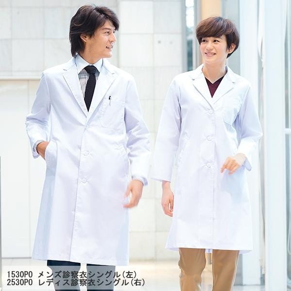 ■1530PO-1 ドクターウェア メンズ診察衣シングル ホワイト