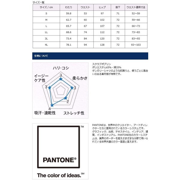 ◇履き心地ラクラクのウエストゴム仕様。後ろポケットにPANTONEオリジナルピスネーム付き。