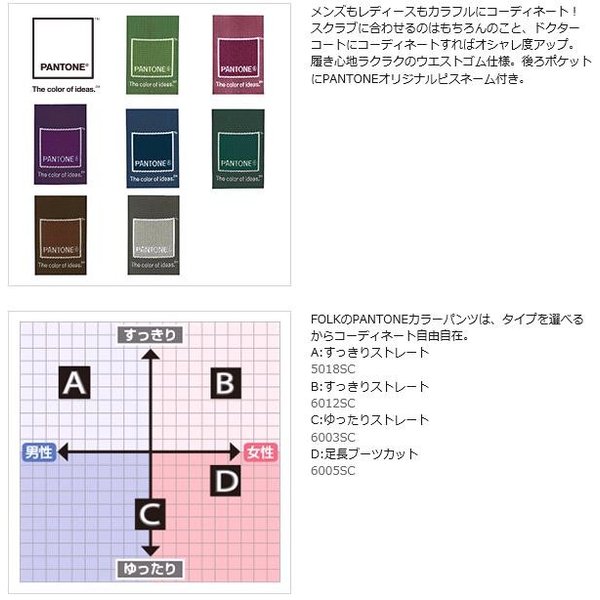 FOLKのPANTONEカラーパンツは、タイプを選べるからコーディネート自由自在。