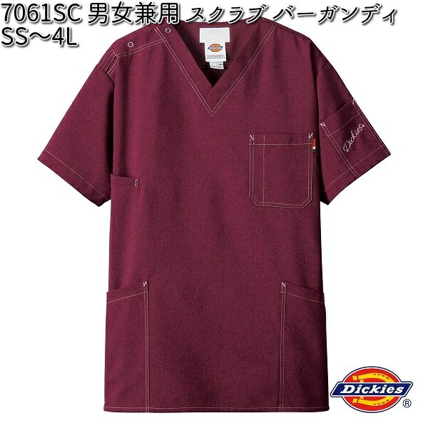 ■7061SC-16 男女兼用 ディッキーズ スクラブ バーガンディ SS?4L