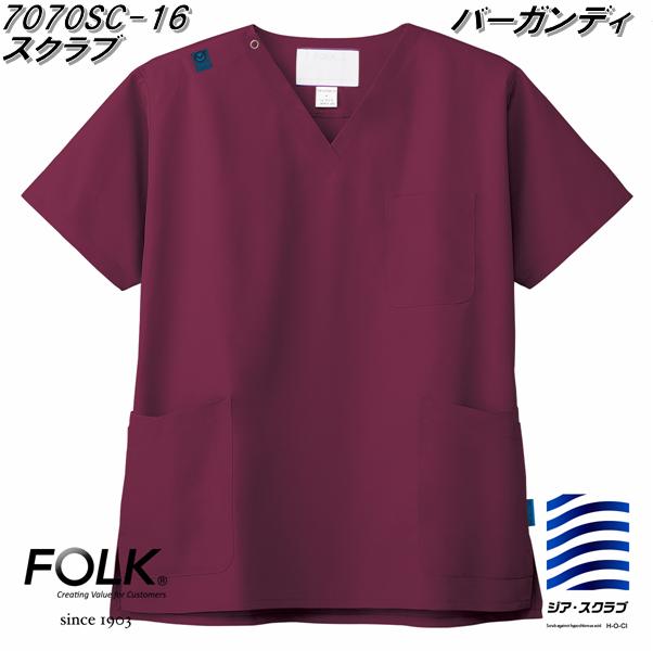 FOLK フォーク 7070SC-16 ジア・スクラブ ジアスクラブ バーガンディ 男女兼用【お取り寄せ製品】【スクラブ 医療ユニフォーム 白衣 メディカルウェア 感染症対策対応スクラブ】