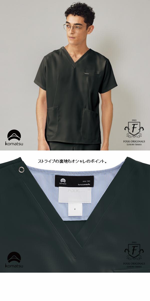 FOLK フォーク 7077SC-15 高級メンズスクラブ チャコールグレー 小松マテーレ コラボスクラブ【お取り寄せ製品】【ドクターコート スクラブ 医療ユニフォーム 白衣 メディカルウェア】