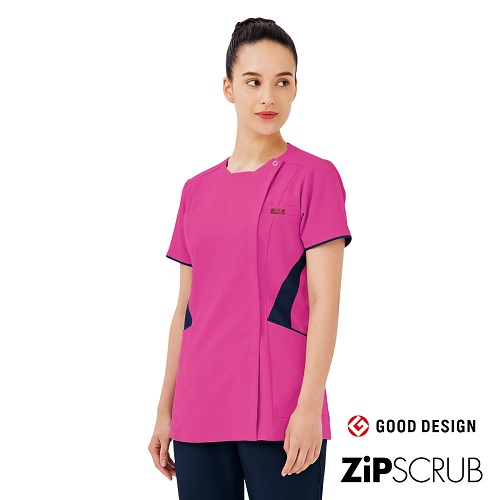 FOLK フォーク 7078SC-13 レディスジップスクラブ フクシャピンク×ダークネイビー【お取り寄せ製品】【スクラブ 医療ユニフォーム 白衣 メディカルウェア スクラブ メディカル製品】