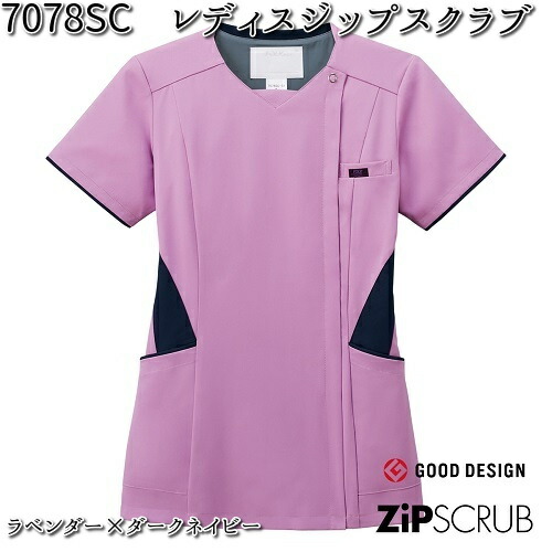 FOLK フォーク 7078SC-52 レディスジップスクラブ ラベンダー×ダークネイビー【お取り寄せ製品】【スクラブ 医療ユニフォーム 白衣 メディカルウェア スクラブ メディカル製品】