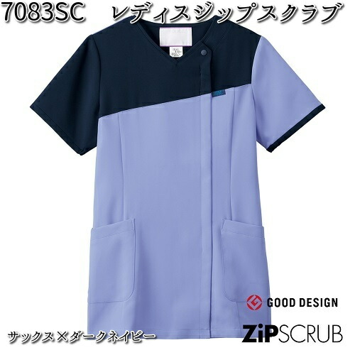 FOLK フォーク 7083SC-2 レディスジップスクラブ サックス×ダークネイビー【お取り寄せ製品】【スクラブ 医療ユニフォーム 白衣 メディカルウェア スクラブ メディカル製品】