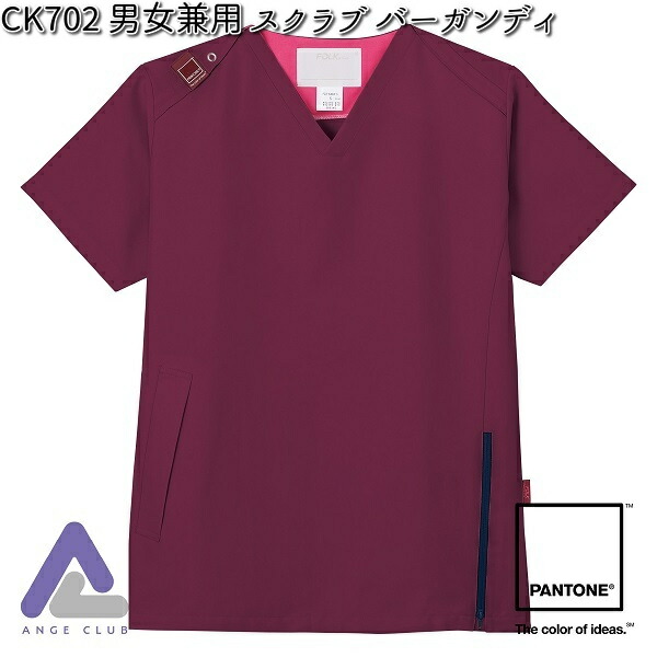 ■FOLK CK702-16 PANTONE 男女兼用 スクラブ バーガンディ SS〜4L フォーク パントン 【お取り寄せ製品】【スクラブ 医療ユニフォーム 白衣 メディカルウェア スクラブ メディカル製品】