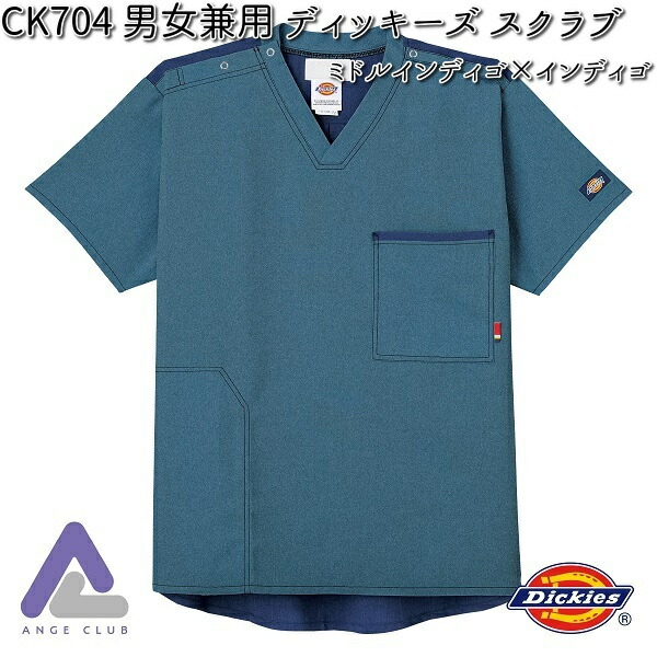 FOLK CK704-12 男女兼用 ディッキーズ スクラブ ミドルインディゴ×インディゴ SS〜4L フォーク Dickies 【お取り寄せ製品】【スクラブ 医療ユニフォーム 白衣 メディカルウェア スクラブ メディカル製品】