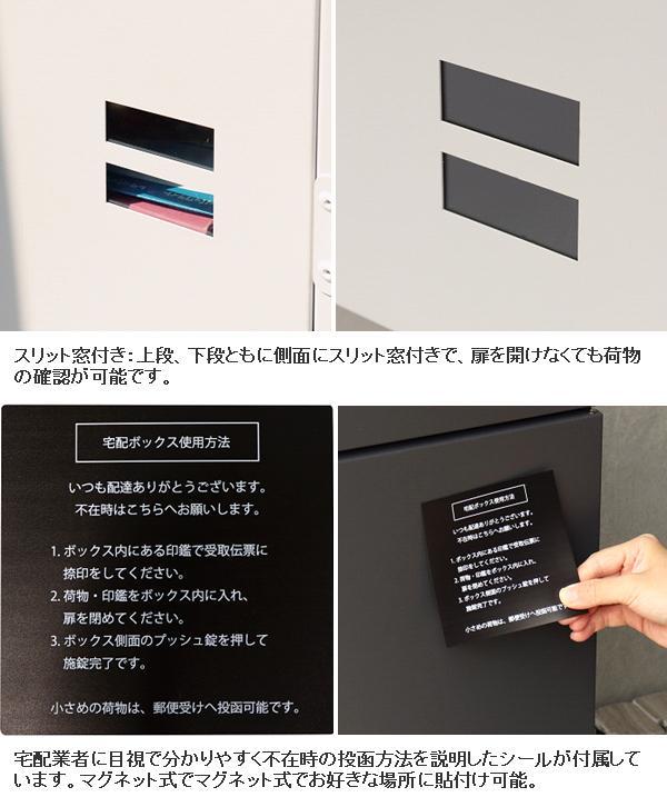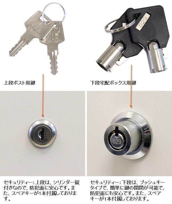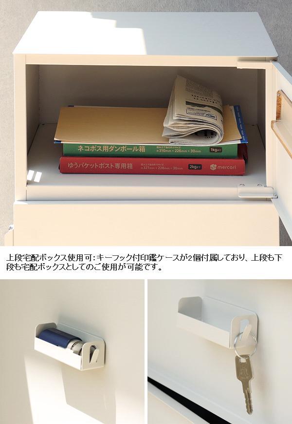 ◇上段宅配ボックス使用可:キーフック付印鑑ケースが2個付属しており、上段も下段も宅配ボックスとしてのご使用が可能です。