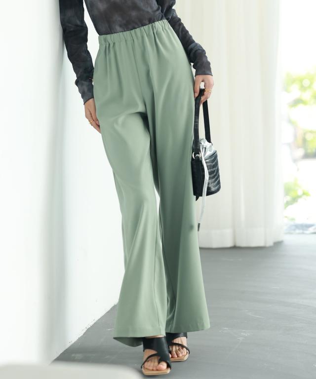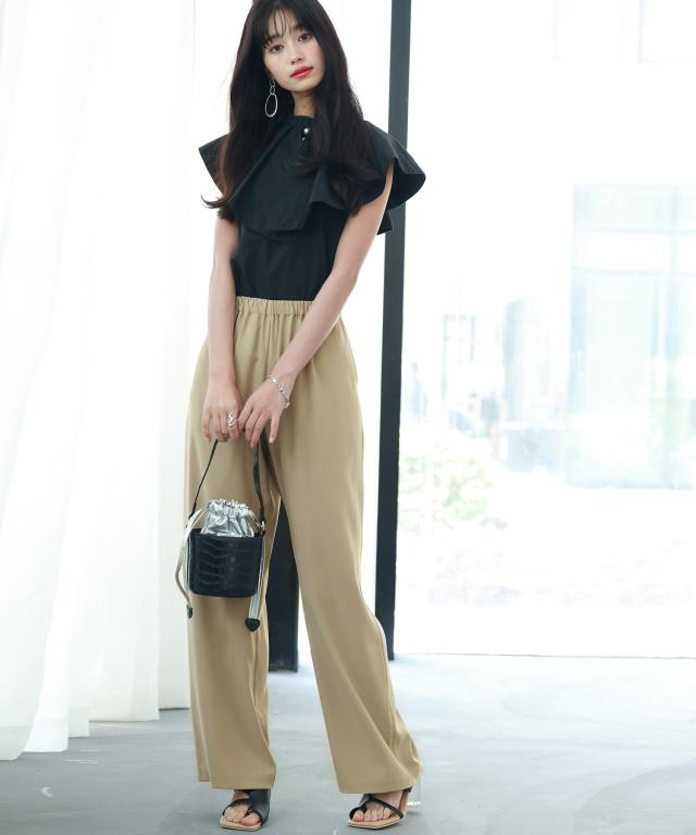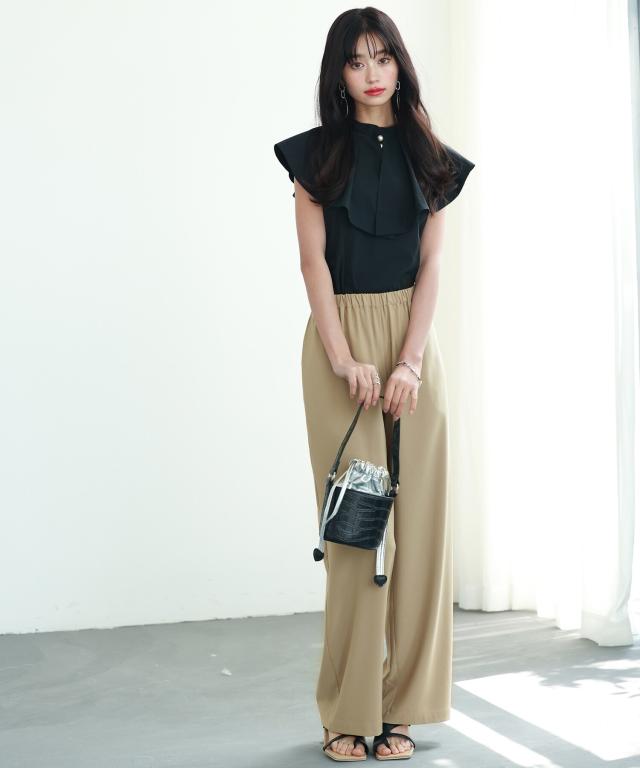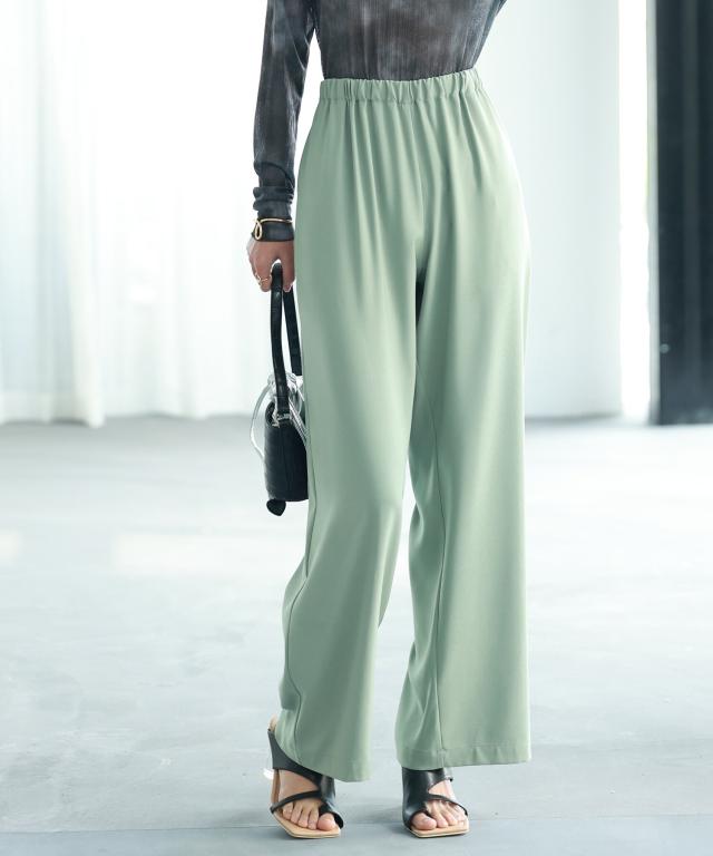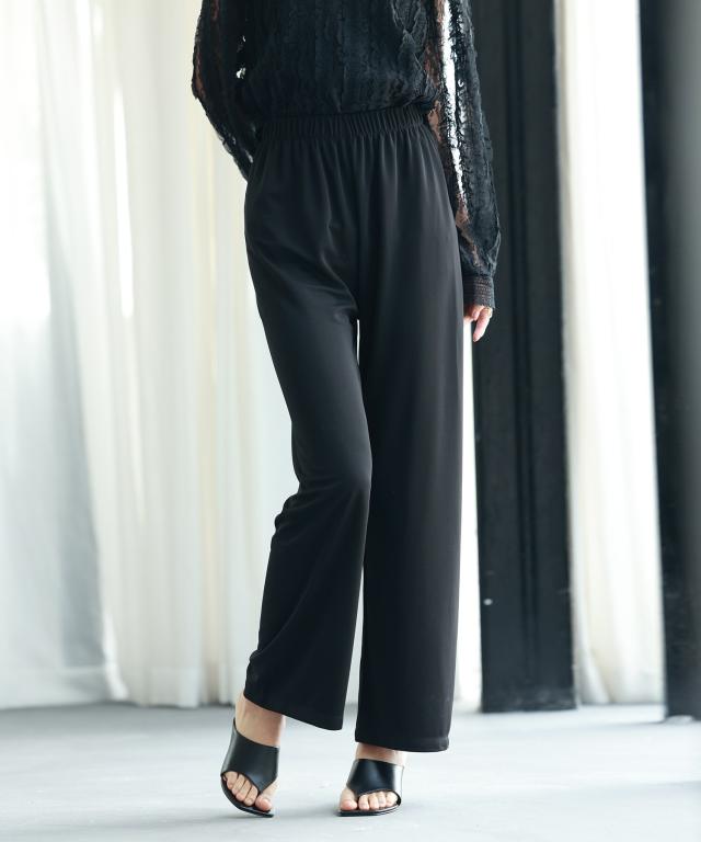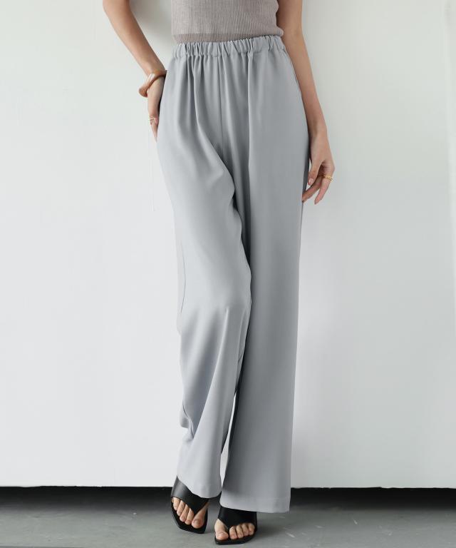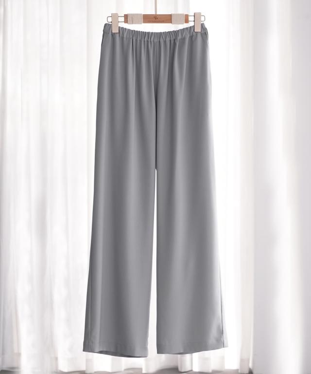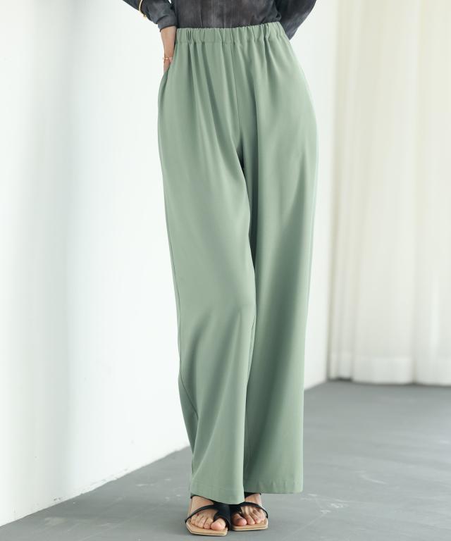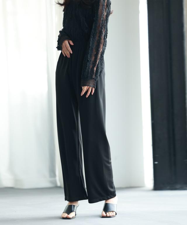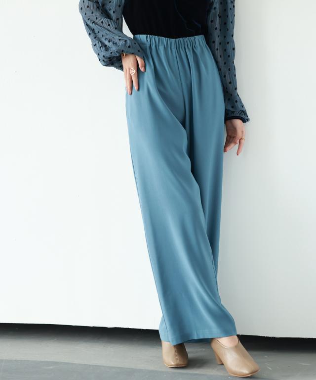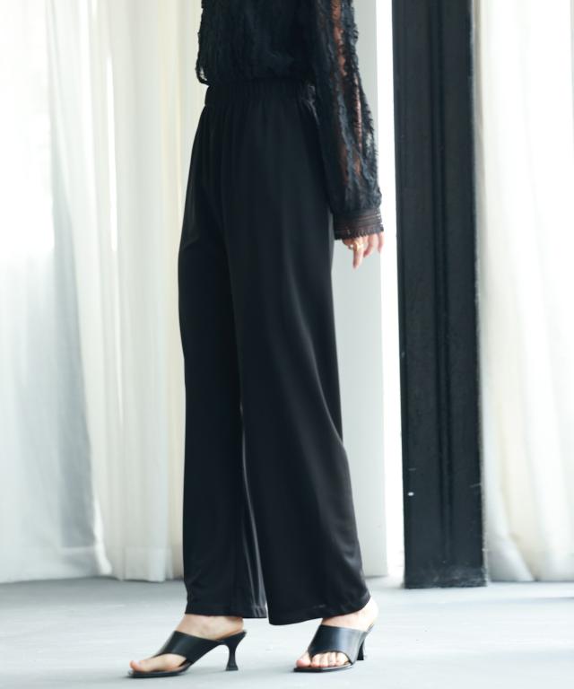 とろみ素材ウエスト総ゴムワイドパンツ