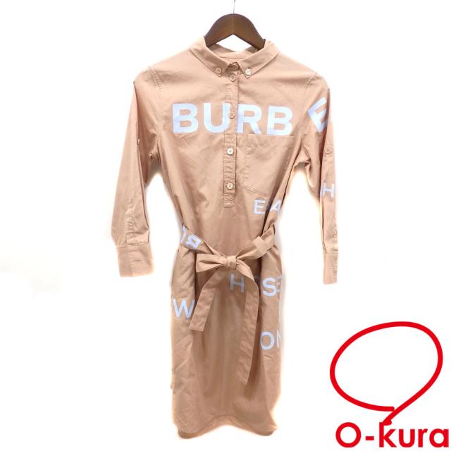 中古 バーバリー ワンピース レディース 七分袖 コットン ベージュ系 サイズ32 ロゴ ひざ丈 膝丈 8039614 綿 古着 アパレル
