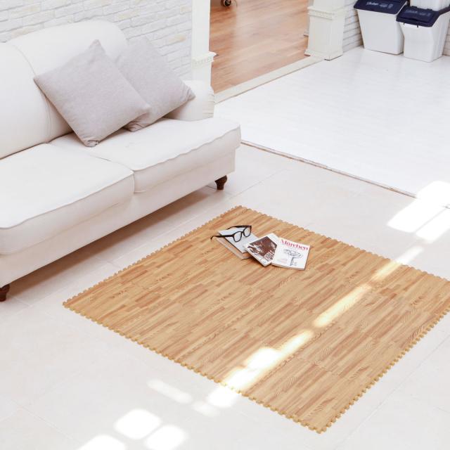 ジョイントマット やわらかウッディマット 9枚組 木目調 厚さ10mm インテリアマット ( タイルカーペット カーペット フロアマット 防音マット 木目 柄 クッションマット 防音 洗える カット可能 子ども お年寄り 高齢者 ペット 9枚 )