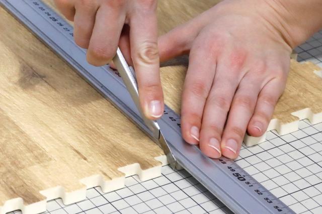 ハサミやカッターでカット出来るので、お好みの形に合わせてアレンジも自由自在です。壁や柱に合わせてカットすれば、コーナーにピッタリ敷き詰められて見栄えも抜群です。