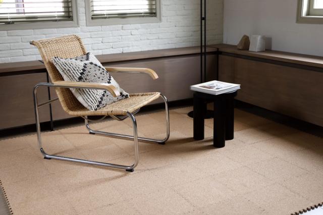 表面は天然コルクを使用しているので、夏はサラッと爽やかに、冬は保温効果もあるので暖かく快適な踏み心地が味わえます。ジョイント部のつなぎ目が目立ちにくくお部屋に馴染むので、こだわりのインテリアにも最適です。
