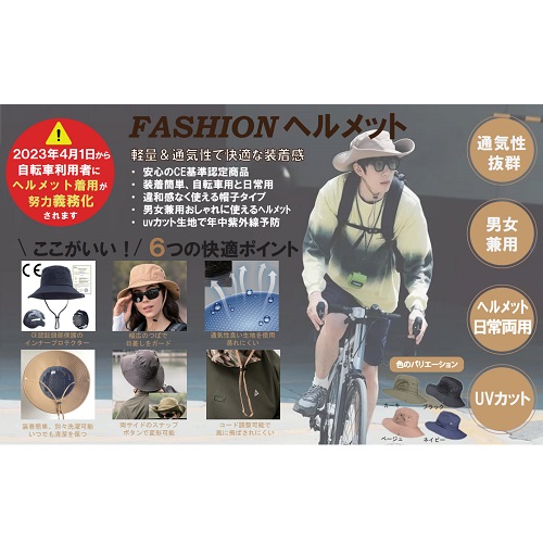 自転車用 ユニプロファッションヘルメット ハットスタイル 全4色展開 CE、RoHS基準 帽子風 ヘルメット 男女兼用 UVカット 送料無料