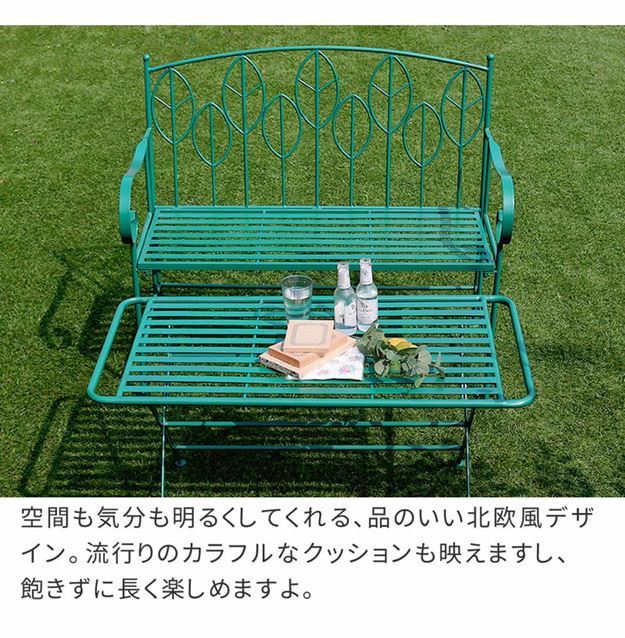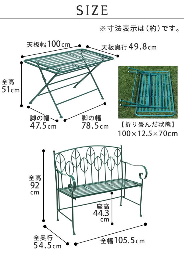 ガーデンテーブル アイアン製 ローテーブル ベンチ 1脚 2点セット サニーリーフ 庭 ベランダ 野外 屋外