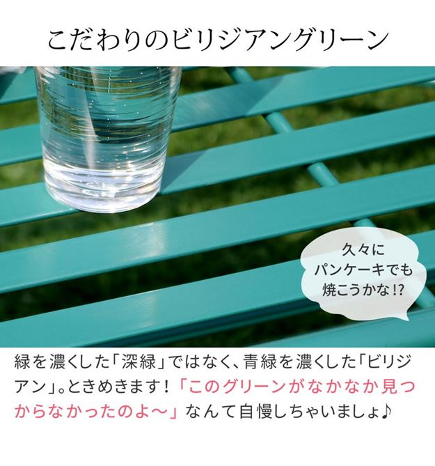 ●ガーデンセットでは珍しいローテーブルは、使い勝手のいい幅1m。憧れのカフェスタイルをお庭で実現。
