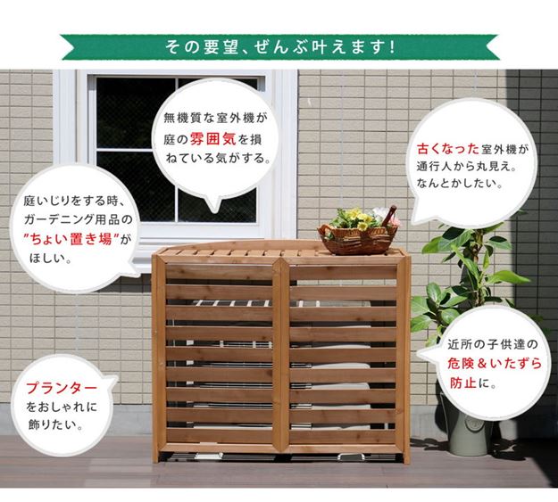 室外機カバー エアコン室外機カバー 幅108cm おしゃれ 大型 木製 逆ルーバー 日よけ 日除け 目隠し ガーデンラック