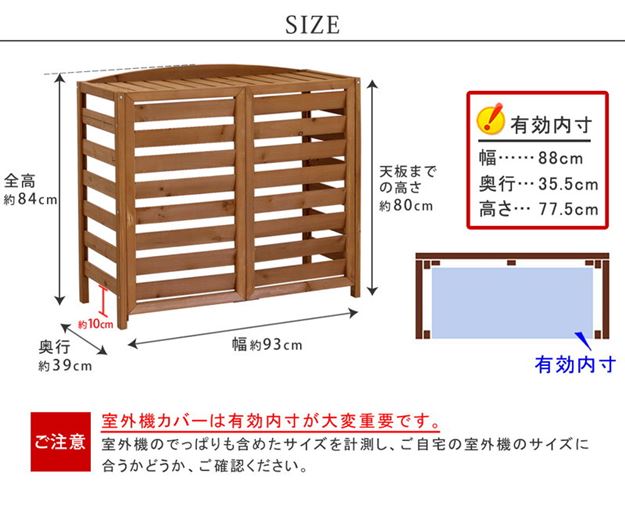 室外機カバー エアコン室外機カバー 幅93cm おしゃれ 北欧 木製 逆ルーバー 日よけ 日除け 目隠し ガーデンラック