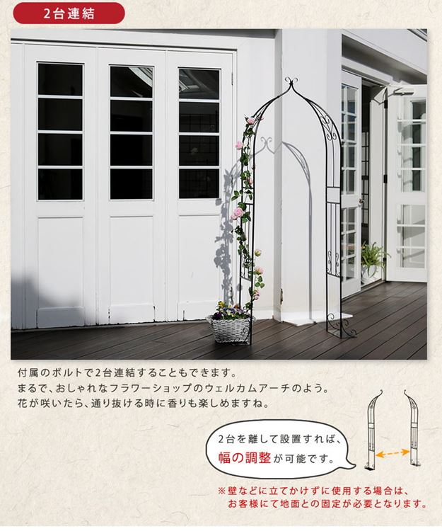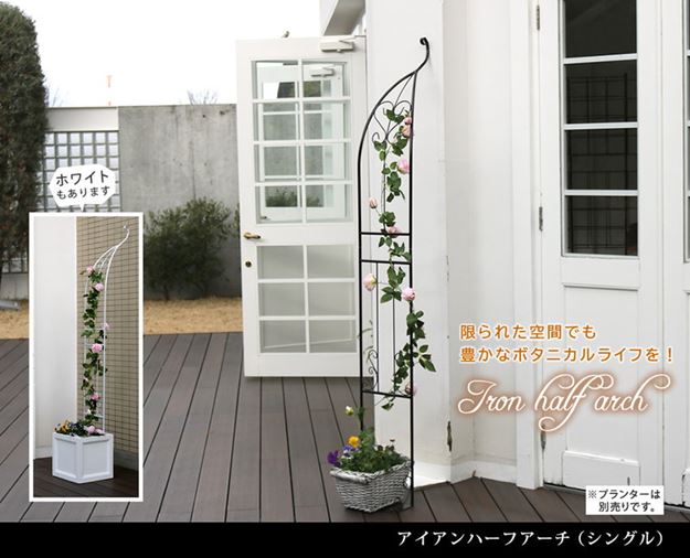 ●ベランダでも憧れのバラアーチが叶う、繊細で軽やかなハーフアーチ♪