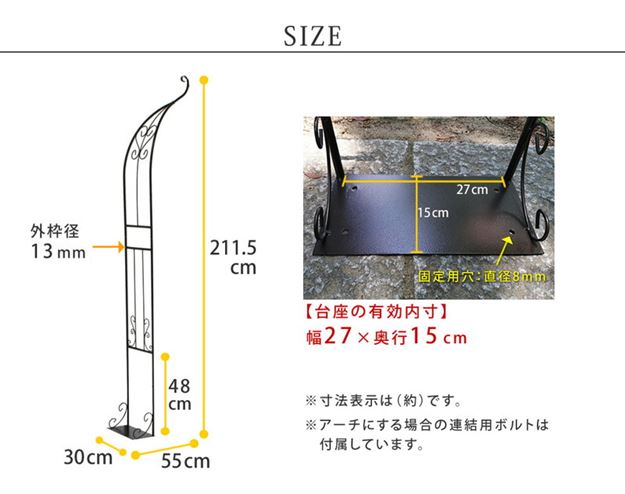 ガーデンアーチ アイアン ハーフアーチ シングル 小型 スリム バラ 薔薇アーチ 省スペースタイプ