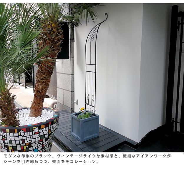 ●設置は簡単、壁に立てかけて、プランターや鉢を重しがわりに乗せるだけ。