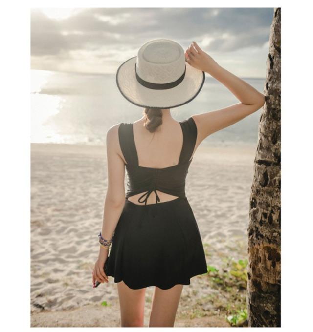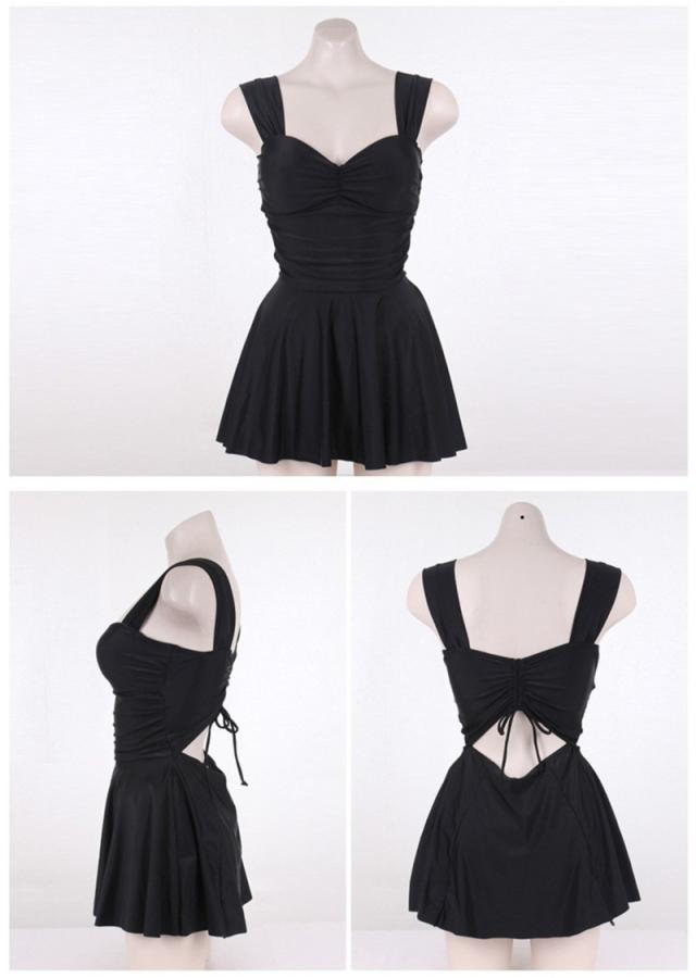 ★オールインワインのワインピースタイプ水泳着、気になる体型もカバーできる。