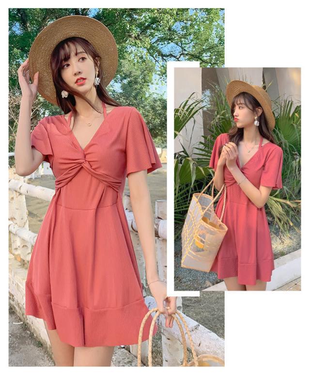 ☆A字型のワンピースデザインが体型をカバーしてお尻とお腹周りを隠しつつ、パンツ付きも安心感がある。