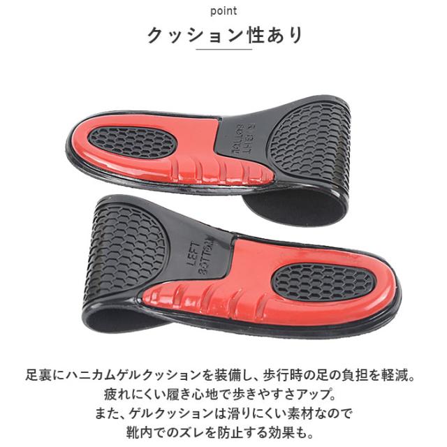 | 商品説明 | ・靴を履く度に足裏が気持ち良い!快適インソールが発売。 【クッション性あり】 ・足裏にハニカムゲルクッションを装備し、歩行時の足の負担を軽減。疲れにくい履き心地で歩きやすさアップ。また、ゲルクッションは滑りにくい素材なので靴内でのズレを防止する効果も。 【マッサージ効果】 ・凹凸クッションが足裏を心地よく刺激し、快適な履き心地。 【サイズ調節可能】 ・靴のサイズに合わせてハサミでカットできるので、ちょうど良いサイズに調節可能。 【靴を選ばない】 ・スニーカーやブーツなど靴を選ばず使用できるのも嬉しいポイント。 【洗い替えにもおすすめ】 ・汚れが気になったら手洗いできるので、洗い替えに用もおすすめ。 |