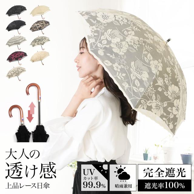 日傘 完全遮光 折りたたみ 遮光率100% レディース 雨傘兼用 晴雨兼用 長傘 UVカット99.9% UPF50+ レース 二重張り かわず張り 耐風 ワンタッチ ジャンプ 深張り レディース 傘 晴れ雨兼用 雨晴れ兼用 送料無料 スライド式 ショート