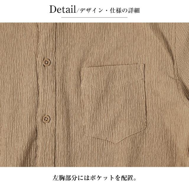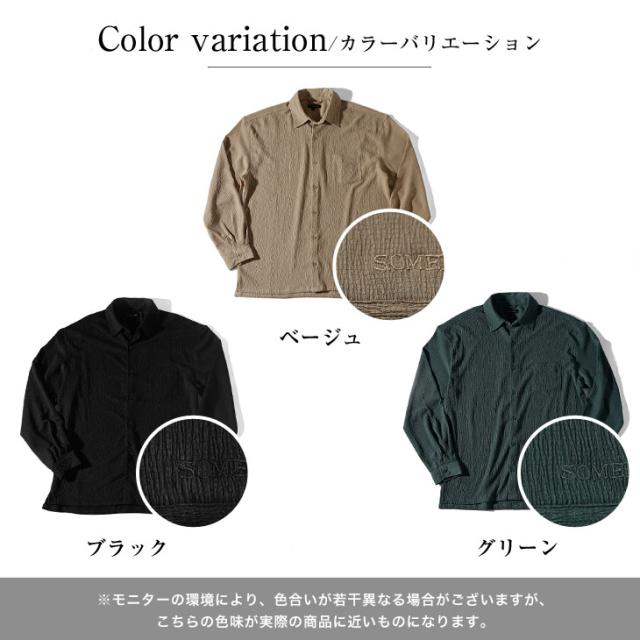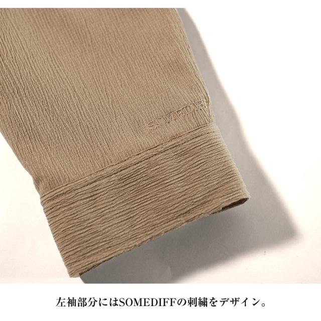 SOMEDIFF(サムディフ)『サマーリゾート長袖シャツ』【サマーリゾート長袖シャツ】■Design/デザイン纏うだけでリゾートなテイストが広がる長袖の楊柳シャツ。縦方向に凹凸のある細かいシボ(不規則なシワ模様)が入っている楊柳生地を使用することで、肌への接地面を減らし清涼感のある着こなしが可能に。それだけでなく、無地でもシンプル過ぎないデザイン性を演出。程よくビッグなシルエットに仕上げることで、リラックス感ある佇まいに仕上がる。軽妙洒脱に夏を着こなし、他との違いを魅せつけろ。