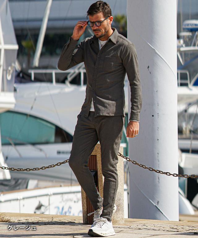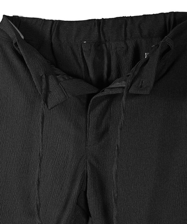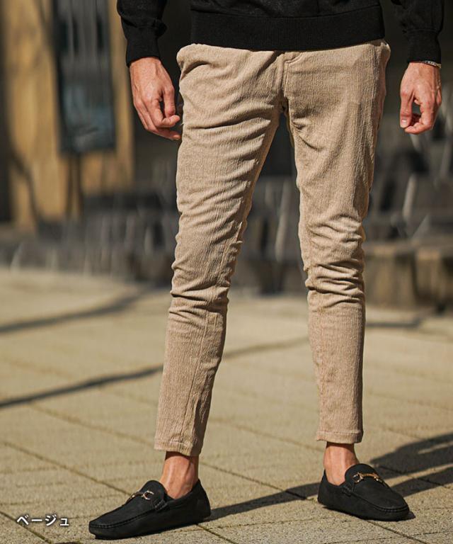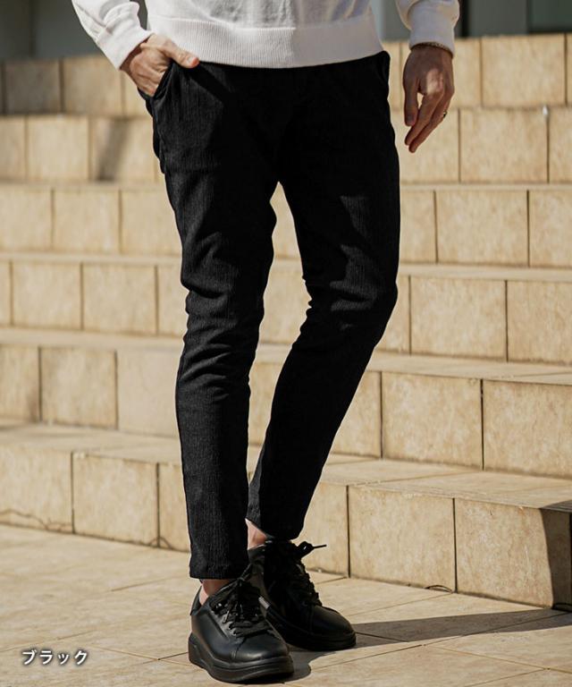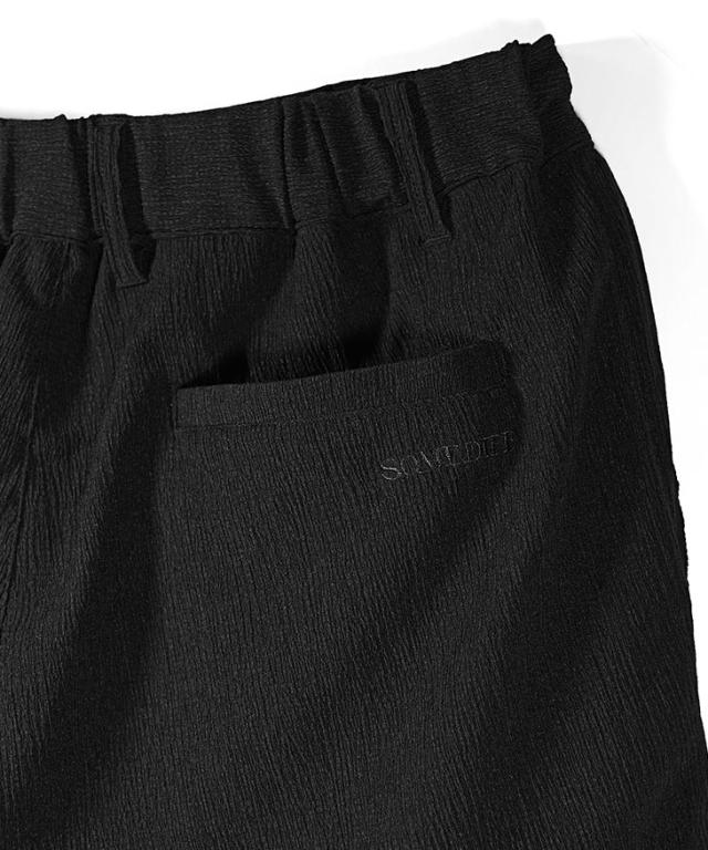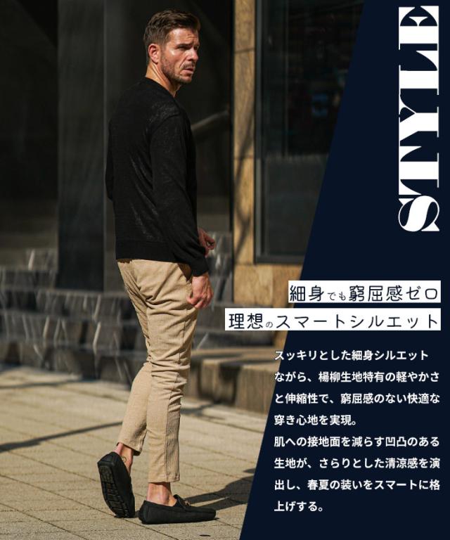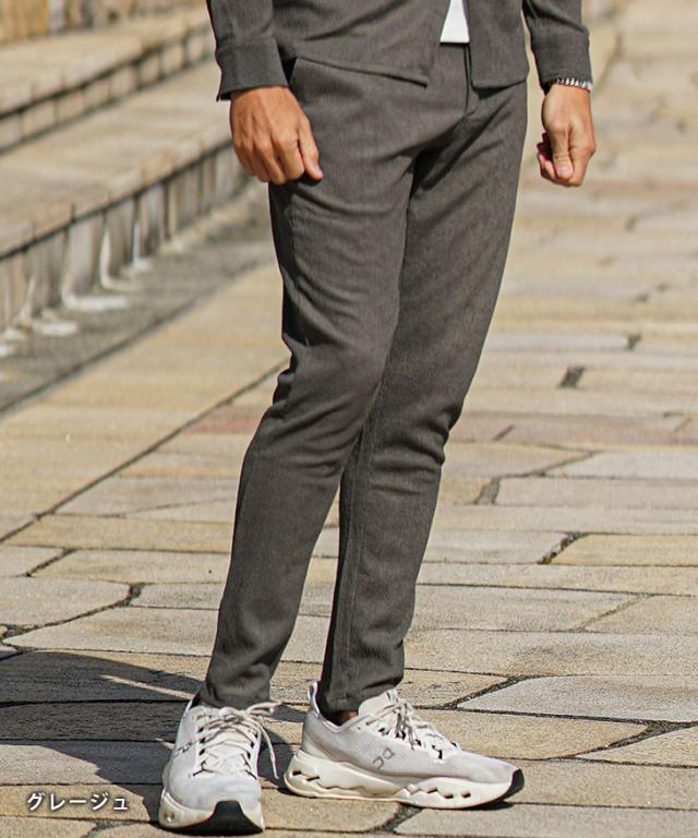 SOMEDIFF(サムディフ)『楊柳スキニーパンツ』【楊柳スキニーパンツ】■Design/デザインスマートに夏を穿きこなすイージーなスキニーパンツ。縦方向に凹凸のある細かいシボ(不規則なシワ模様)が入っている楊柳生地を使用することで、肌への接地面を減らし清涼感のある着こなしが可能に。それだけでなく、無地でもシンプル過ぎないデザイン性を演出。脚のラインが出るシルエットに仕上げることで見た目も穿き心地も爽やかに。楽してスマートに魅せるスキニーでストレスフリーな夏を楽しめ。■Material/素材感ポリエステルを使用し、季節を感じる軽やかさが特徴。程よく薄手でしなやかさがあり、快適な着用を実現する。