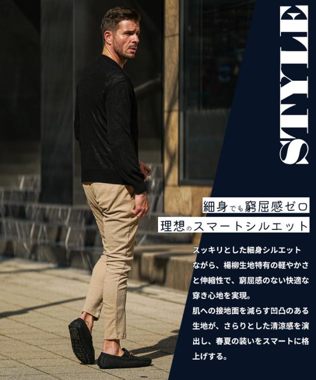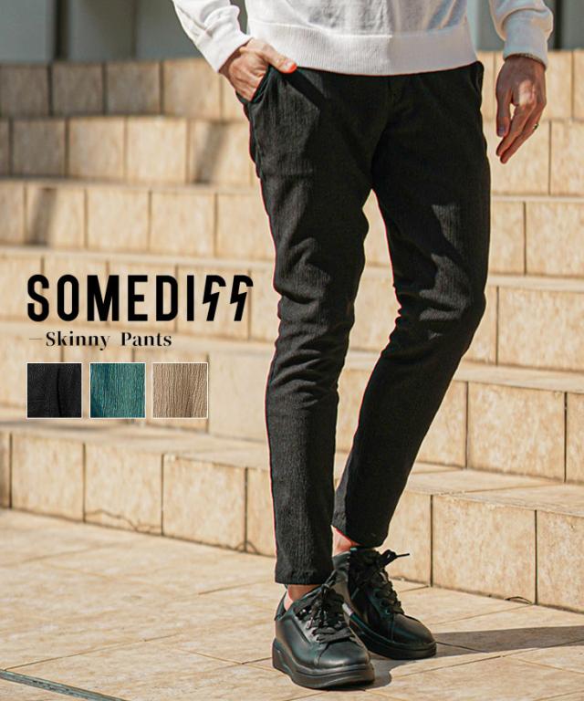 SOMEDIFF(サムディフ)『サマーリゾートスキニーパンツ』【サマーリゾートスキニーパンツ】■Design/デザインスマートに夏を穿きこなすイージーなスキニーパンツ。縦方向に凹凸のある細かいシボ(不規則なシワ模様)が入っている楊柳生地を使用することで、肌への接地面を減らし清涼感のある着こなしが可能に。それだけでなく、無地でもシンプル過ぎないデザイン性を演出。脚のラインが出るシルエットに仕上げることで見た目も穿き心地も爽やかに。楽してスマートに魅せるスキニーでストレスフリーな夏を楽しめ。