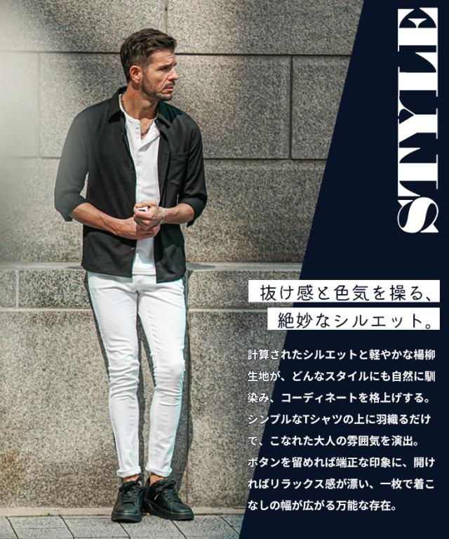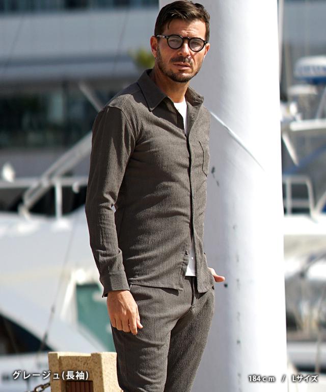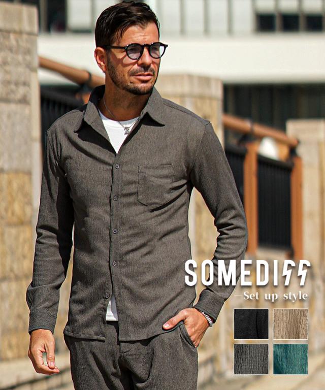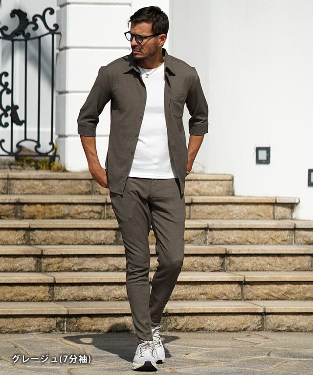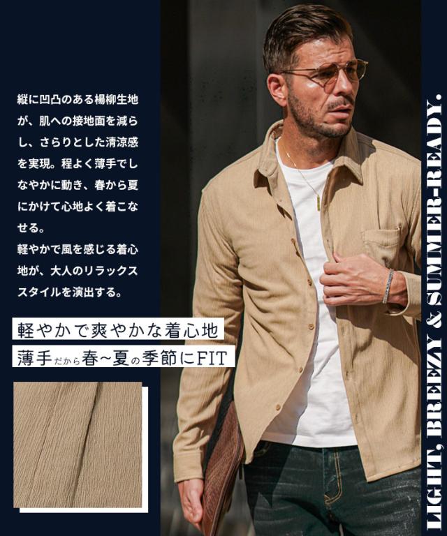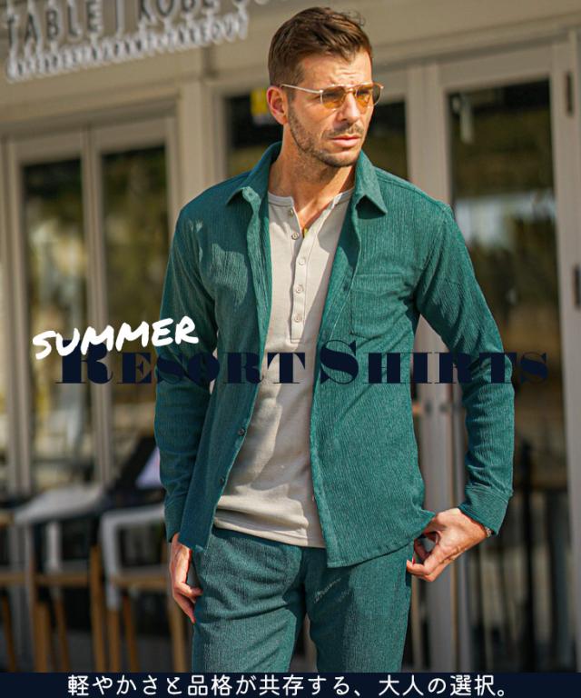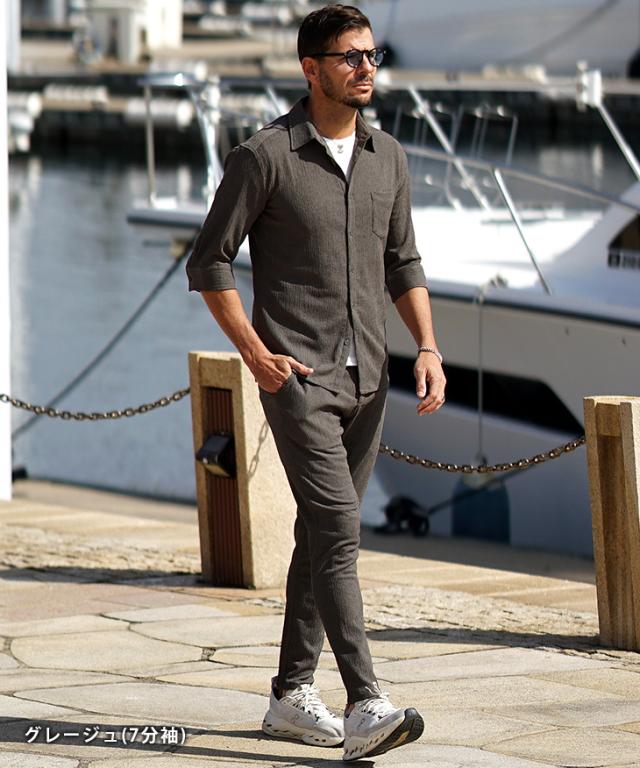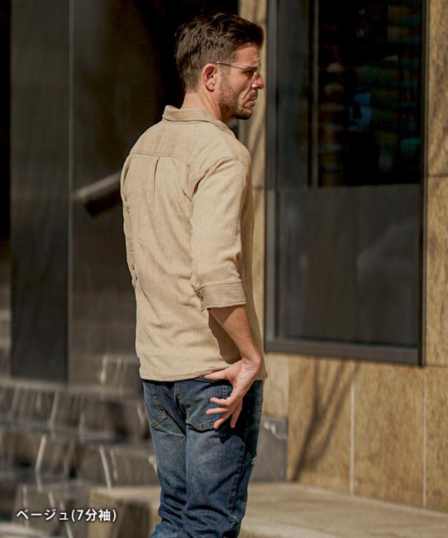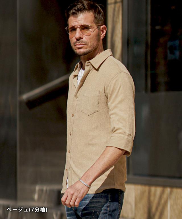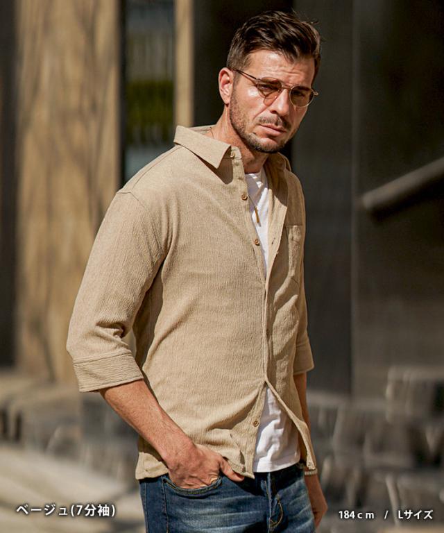 SOMEDIFF(サムディフ)『サマーリゾート7分袖シャツ』【サマーリゾート7分袖シャツ】■Design/デザイン程よくスリムに着こなす快適素材の7分袖シャツ。縦方向に凹凸のある細かいシボ(不規則なシワ模様)が入っている楊柳生地を使用することで、肌への接地面を減らし清涼感のある着こなしが可能に。それだけでなく、無地でもシンプル過ぎないデザイン性を演出。7分袖で肌をチラ見せすることで爽やかさと色気を両立させる。リラックス感をスマートに着こなし洒落感を放つ季節を楽しめ。