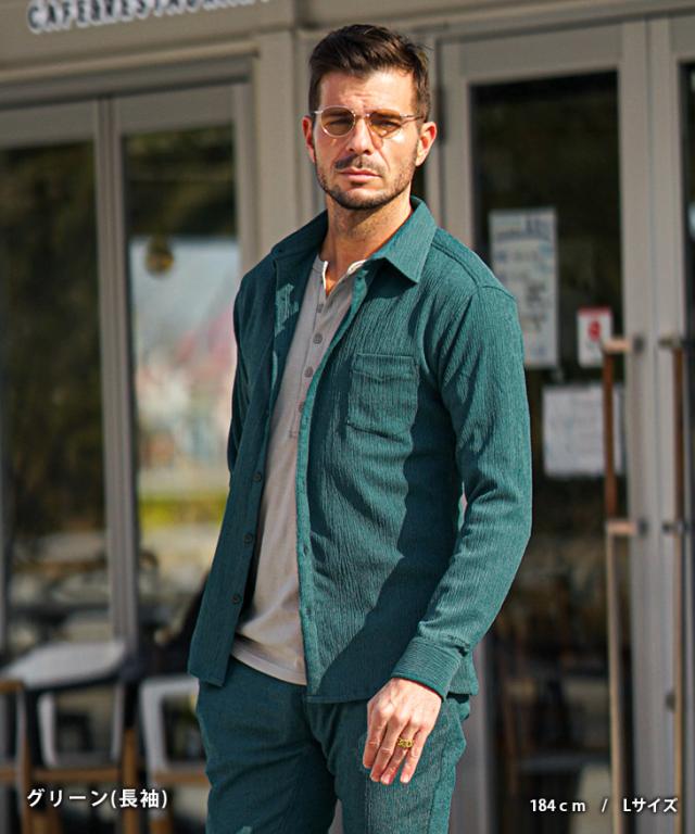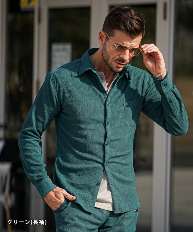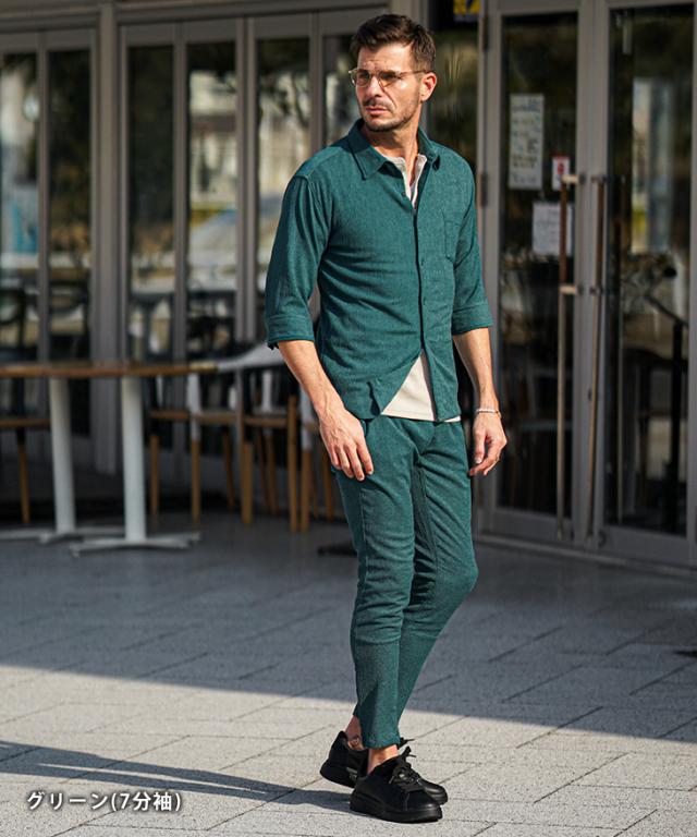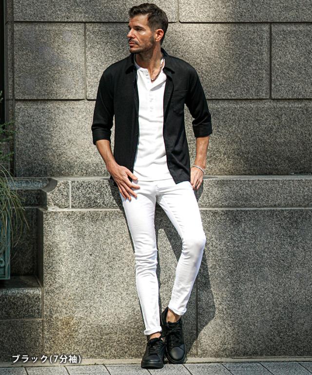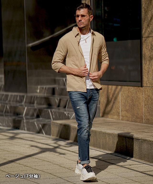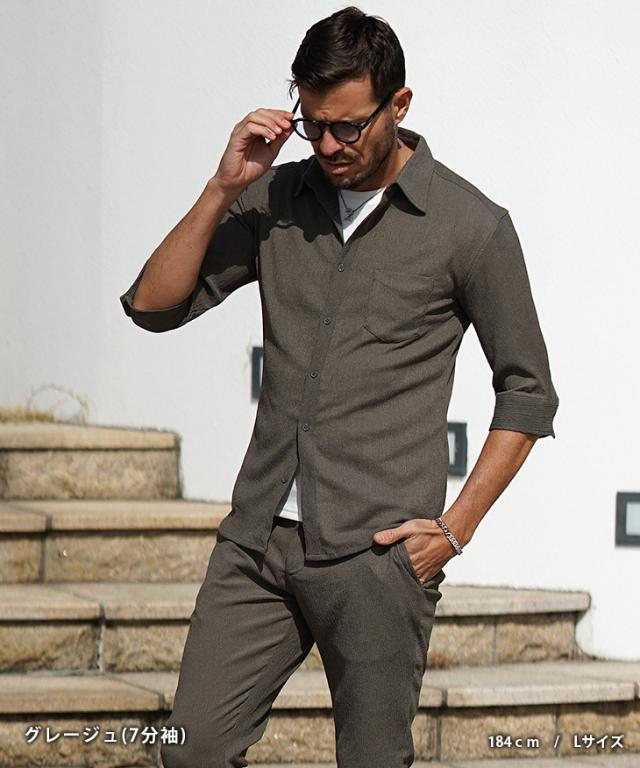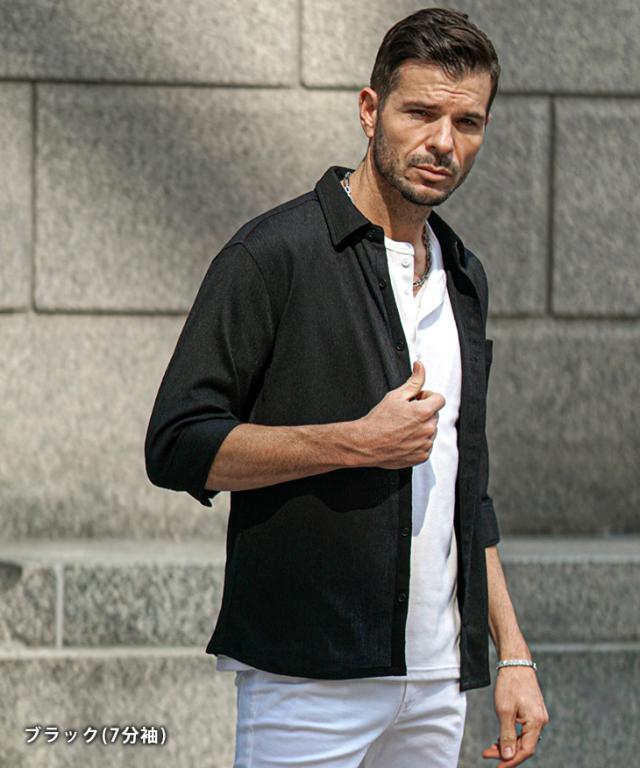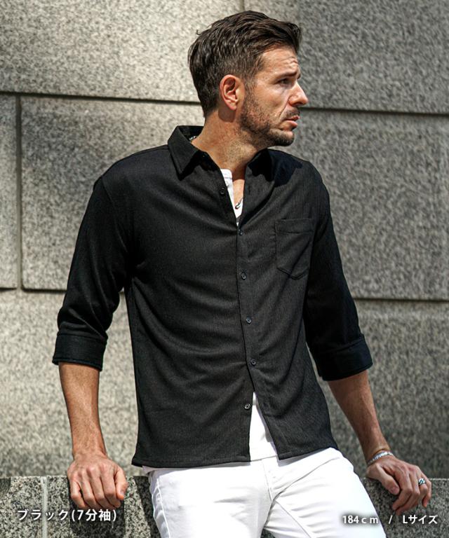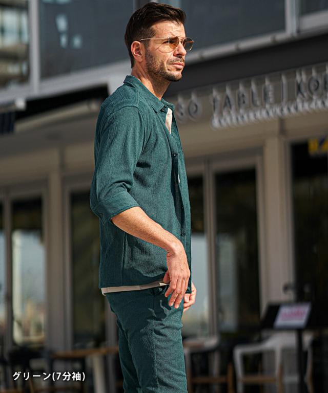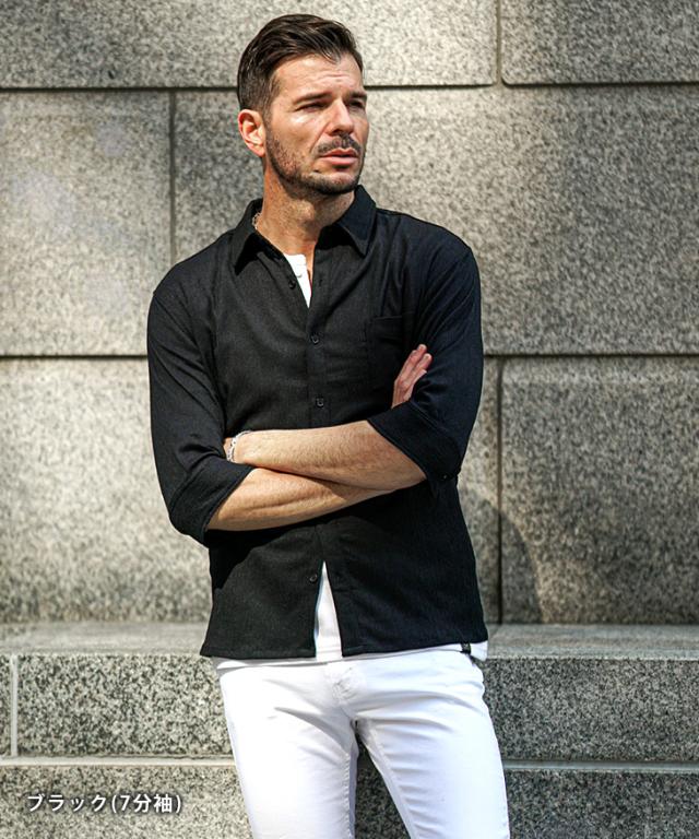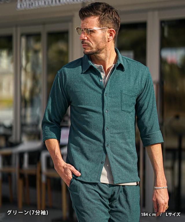 7分袖 長袖シャツ メンズ サマーシャツ シャツ メンズ 七分袖 シャツ メンズ カジュアルシャツ 黒 ブラック ベージュ グリーン 7分丈 七分丈 薄手 スリム タイト LL XL 夏 夏服 夏物 春夏 お兄系 オラオラ系 ちょいワル 春服 春 春新作 新作