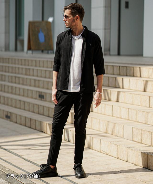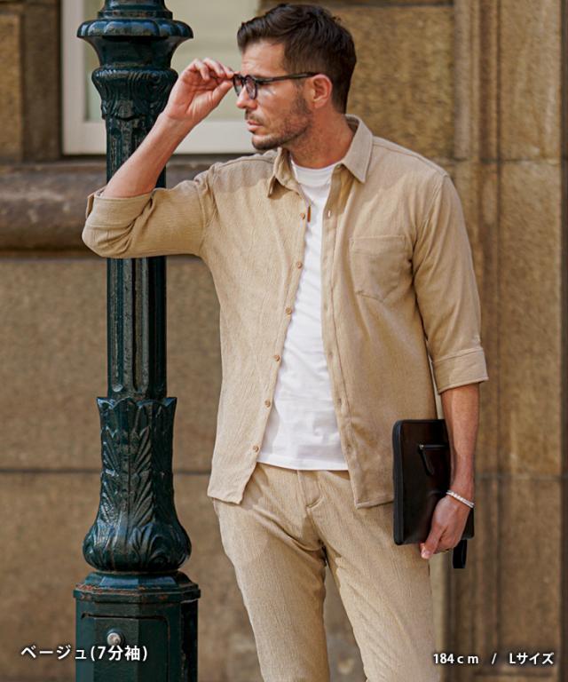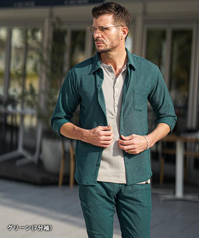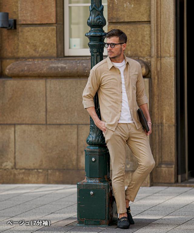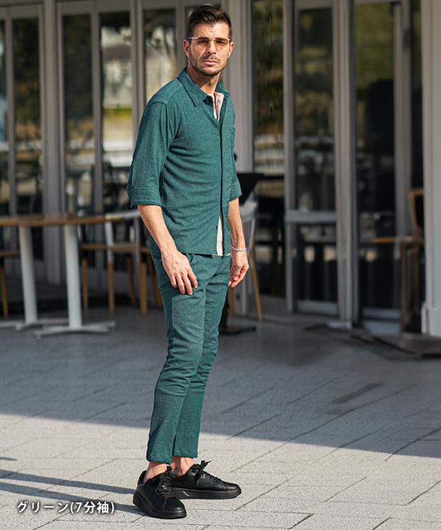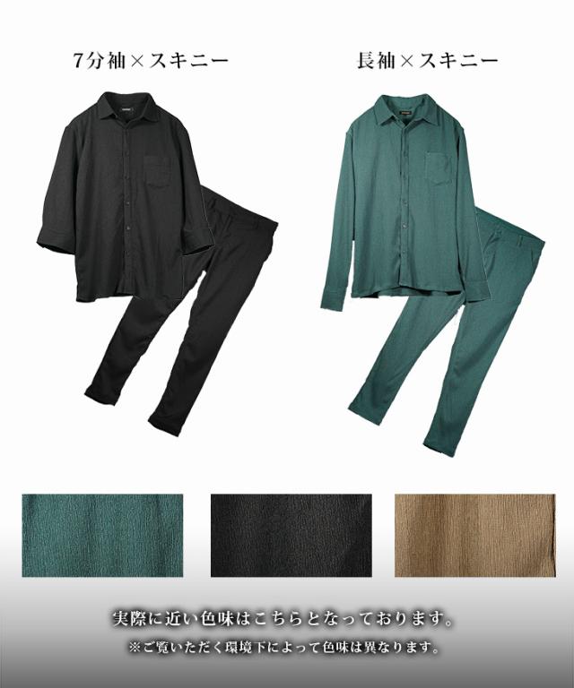 セットアップ メンズ カジュアル 7分袖 長袖 シャツ メンズ サマーシャツ シャツ スキニーパンツ メンズ 七分袖 シャツ テーパードパンツ サマーパンツ 7分丈 七分丈 涼しい 薄手 薄い 無地 夏 夏服 夏物 春夏 お兄系 オラオラ系 ちょいワル 夏服 夏 夏新作 新作