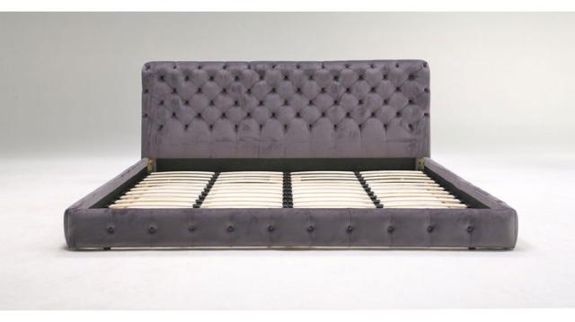 ベッドフレーム キング ベロア調ヘッドボード キングサイズ すのこベッド ベッド フロアベッド フレーム 寝具 インテリア フレーム ベロア アイアン脚 フロアタイプ チェスターフィールド調(代引不可)【送料無料】