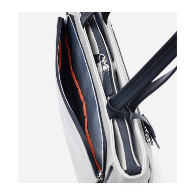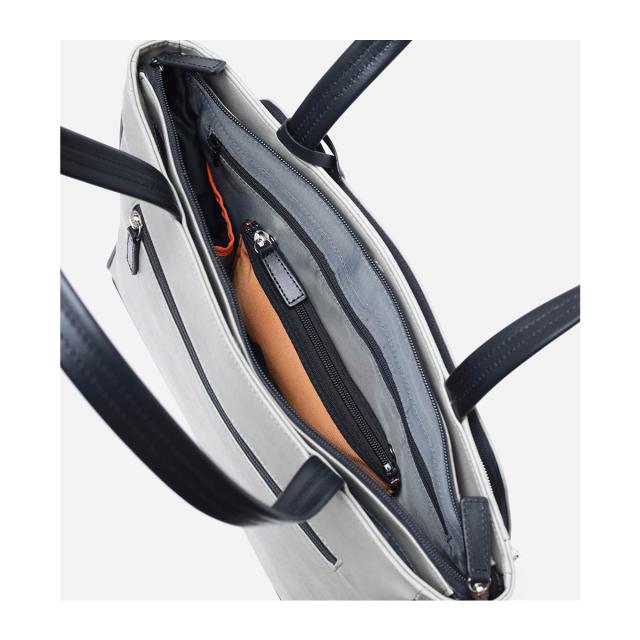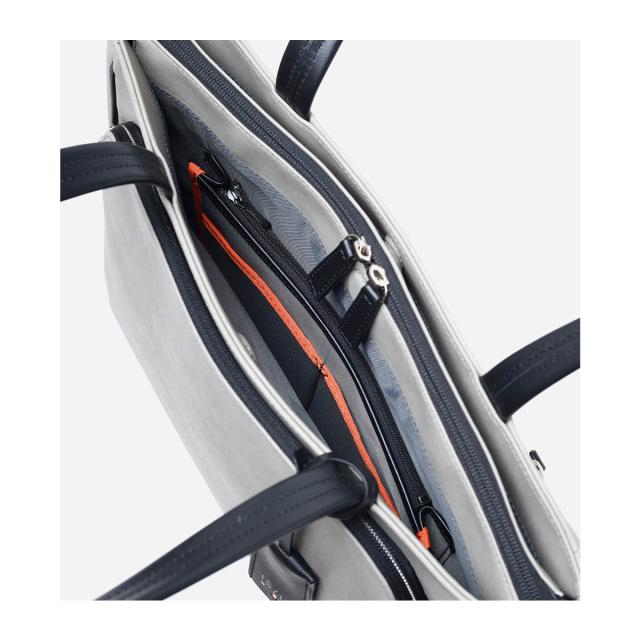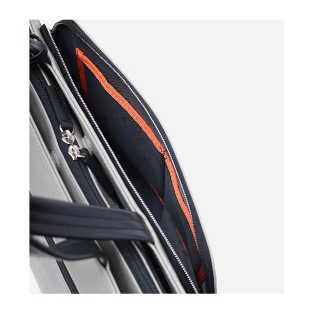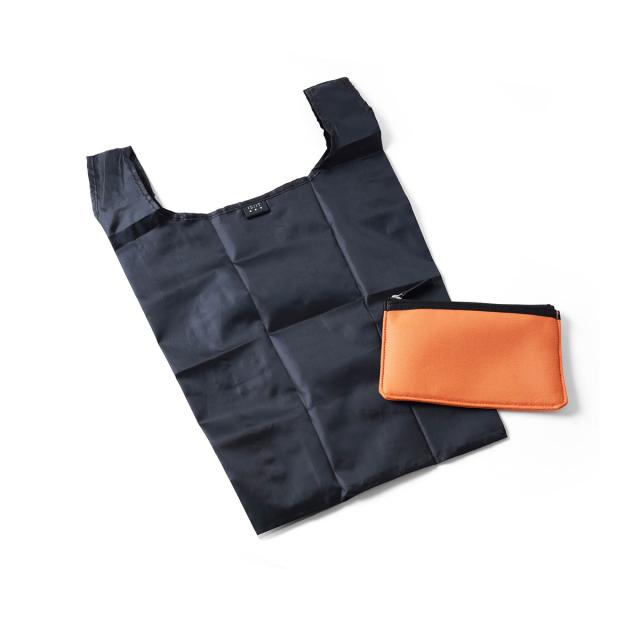 スタンダードなカラーにオレンジの差し色で見やすさをプラス。きちんと感のある自立性、分類収納ポケットで快適収納に加えて、PC収納スリーブ&ガジェット、ケーブル類の入るミニポーチ&レザーキーサック付きです。エコバッグも付属しSDG's!