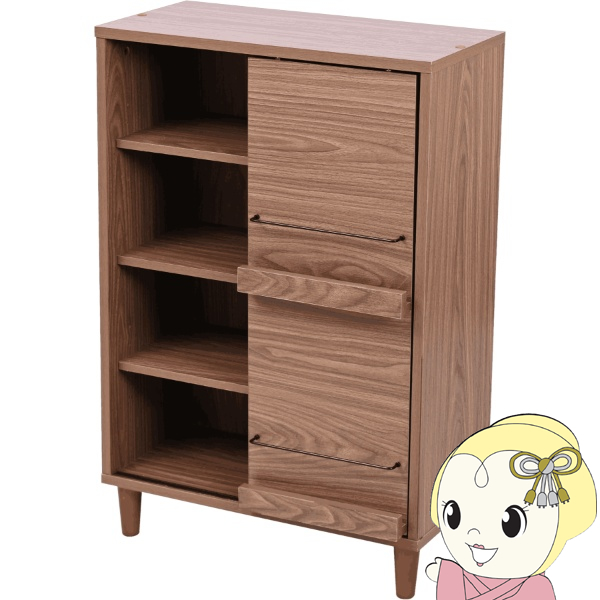 ■カラー:ブラウン【BR】 ■サイズ [外寸]幅60×奥行29.5×高さ90(アジャスター80.5)cm [内寸] (オープン部)各幅56×奥行24.5×高さ37cm (可動棚)幅56×奥行25×厚み1.5cm(3.2cmピッチ5穴) (フラップ部1段目)幅24.5×奥行1.5×高さ35.5cm (フラップ部2段目)幅24.5×奥行1.5×高さ36cm ■素材 [本体]プリント紙化粧合板 [脚]天然木 ■耐荷重 [天板]約10kg以下 [フラップ扉]各約1.5kg以下 [可動棚]各約5kg以下 [扉内固定棚]各約5kg以下 ■備考 ・可動棚2枚 ・背面化粧なし ・脚裏フェルト付き ・アジャスター付き ■組立時間(目安)(大人2人) お客様組立(30分) ※お客様組立て品につきましては、組み立て後に不良の連絡をされても対応ができません。 組み立て前にパーツに不良・傷等がないか、必ずご確認下さいます様よろしくお願い申し上げます。 ※記載は商品仕様の一部です。仕様説明不足等の理由での返品はできません。特に適合等は必ずご確認ください。