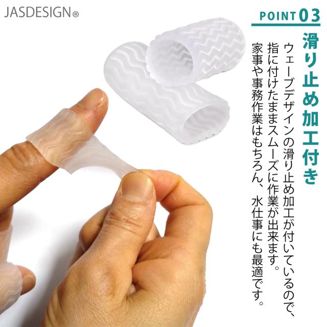 ウェーブデザインの滑り止め加工が付いているので、指に付けたままスムーズに作業が出来ます。