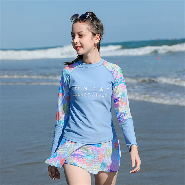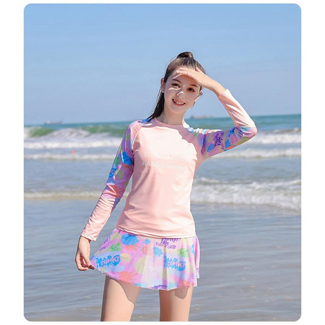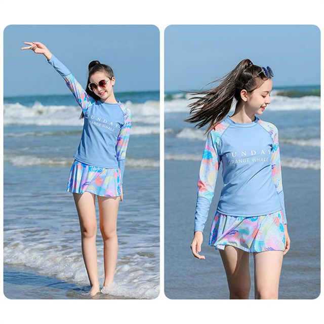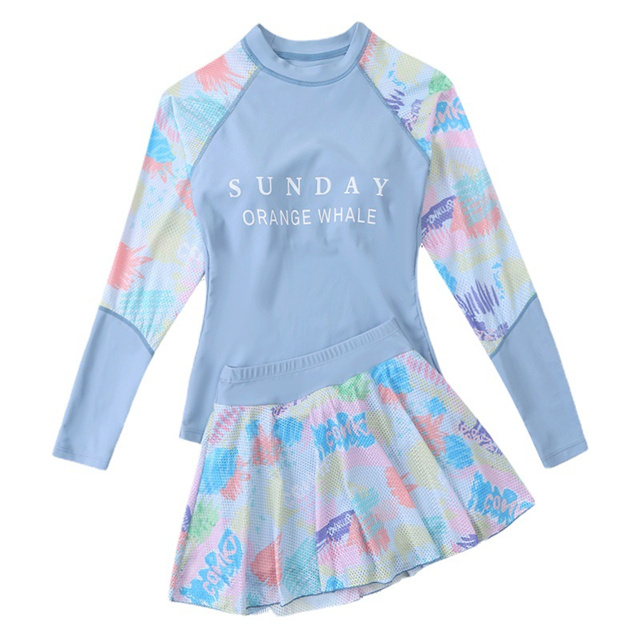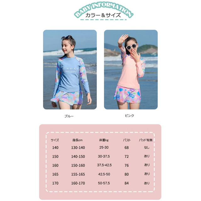 女の子 水着スクール水着 長袖 スカートパンツショート付き 2点セット 体型カバー スイムウェア 新作
