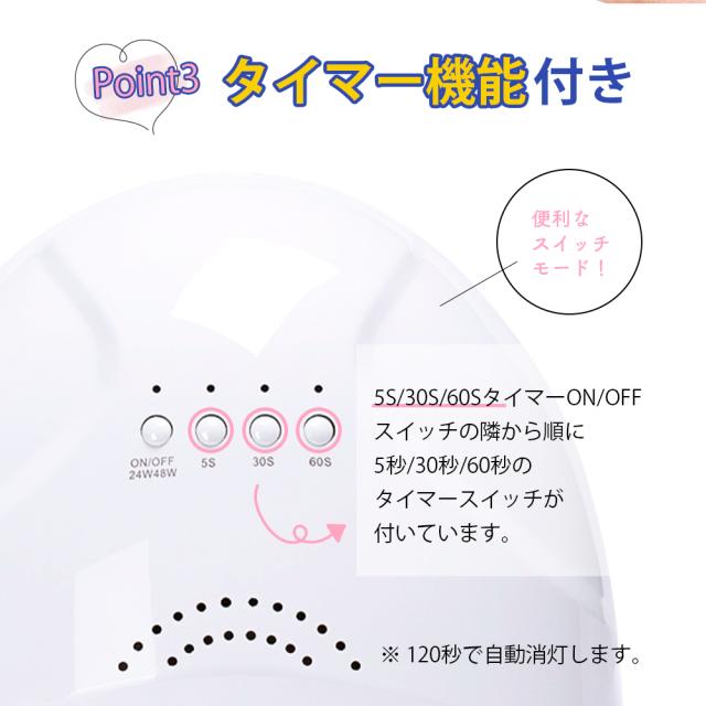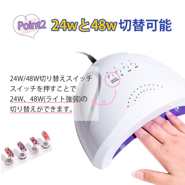P5倍 セール価額 4960円ー2480円 送料無料ジェル ネイルライト uvライト led ネイルライト48W LED UVライト【ネイリスト監修】ジェルネイル UV+LED二重光源 自動感知センサー スイッチ タイマーつき レジン 硬化 低ヒート ネイル用品 uvライト レジン