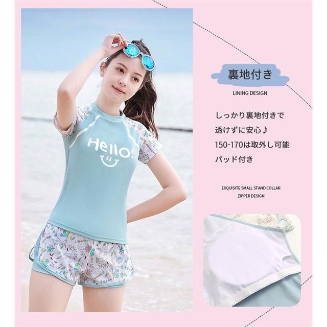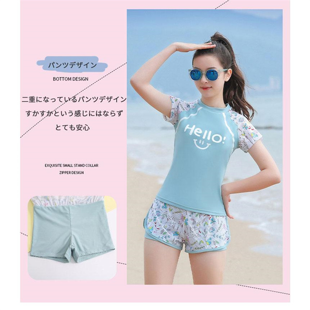 2点セット キッズ水着 女の子 水着 スクール水着 セパレート 半袖 パンツスポーツウエア 高校生 中学生 レデイース 新作 送料無料