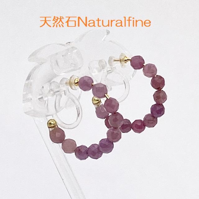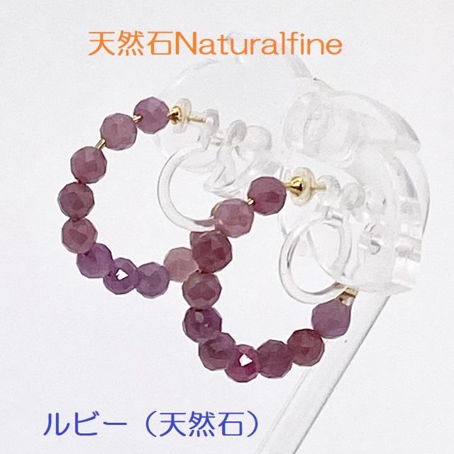 イヤリング ルビー 天然石 フープ 樹脂金具 アレルギー対応 パワーストーン