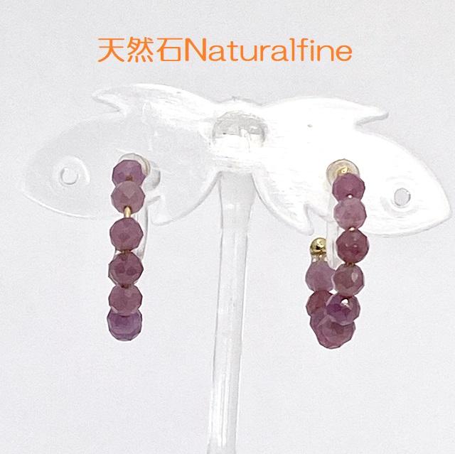 こちらは、天然石ルビーの丸玉4ミリカットをつないだフープイヤリングです。