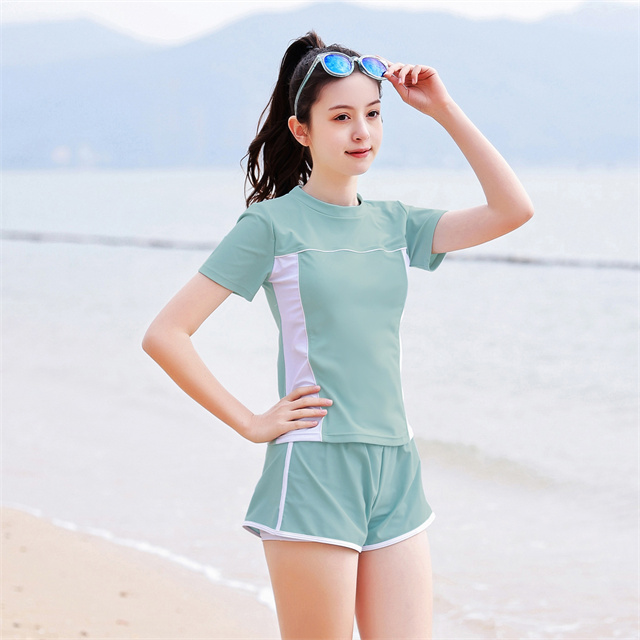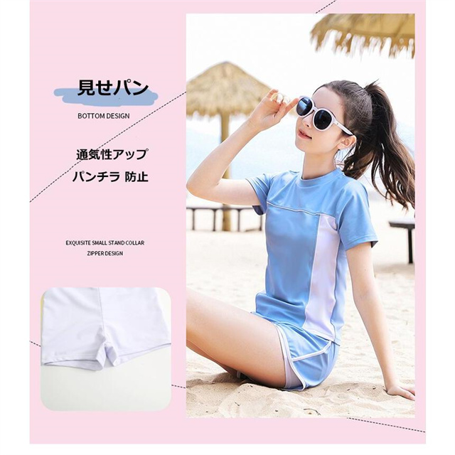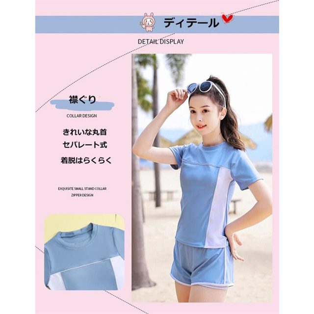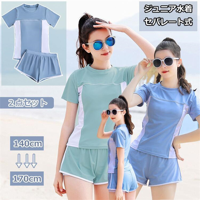 2点セット キッズ水着 女の子 水着 スクール水着 セパレート 半袖 パンツスポーツウエア 高校生 中学生 レデイース 新作