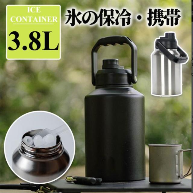【送料無料】アイスコンテナ 3.8L ウォータージャグ 小型 キャンプ用 氷入れ 水筒 タンク 保冷 大容量 真空断熱 広口 アイスペール キャンプ 持ち運び BBQ アウトドア 屋外 冷たい飲み物 304 ステンレス製 水 氷水 ギフト 父の日 運動会 花見