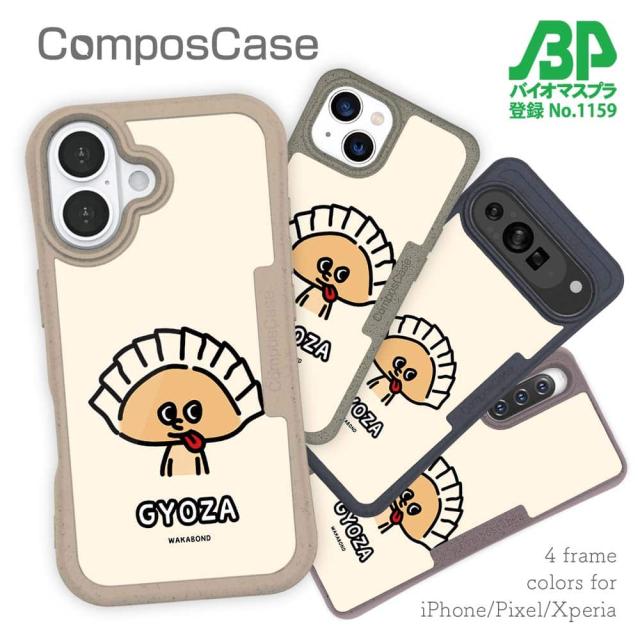 コンポスケース & 着せ替え デザインシート セット Google Pixel9a Pixel9 Pro XL Pixel8a Pixel8 Pro Xperia 10 V ケース 背面 生分解性 4色 ワカボンド WAKAMAKAシリーズ 餃子のギョウザタン