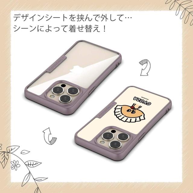 | ケースについて | 背面の内側に入れ込むデザインシートで、シーンに合わせて着せ替え可能。また、グリップしやすいクッション構造で、本体重量は約35gと軽減化を実現。さらにSライン形状で、究極に押しやすいボタン設計(切り込みが入ることで押し込む力を軽減)、背面のカメラ・レンズを保護する高さ設計となっております。生分解性プラスチック素材ながらも着脱もしやすく、割れない・指紋防止加工を施しています。 |