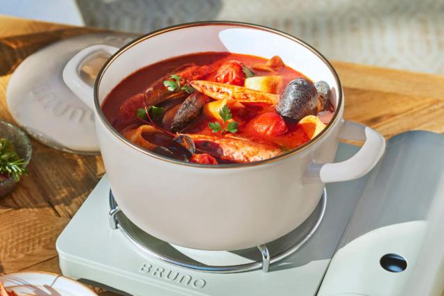 BRUNOと富士ホーローのコラボで生まれた、煮込み料理はもちろん、フタを外してオーブン調理もできる両手鍋です。ガス火でもIH調理器でも効率よく加熱できるので、毎日のキッチンからアウトドアシーンまで心地よく寄り添います。