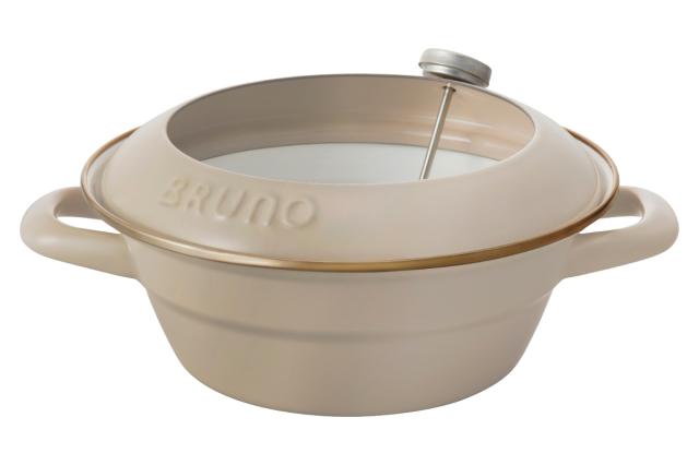 BRUNOと富士ホーローのコラボで生まれた、二度揚げにも便利な温度計付きの天ぷら鍋です。2〜3人分の揚げ物の調理に適したサイズで、ガス火でもIH調理器でも熱効率よく調理できます。熱伝導のいいホーロー製なので、油の温度上昇が早く、揚げ物をカラッと揚げることができます。